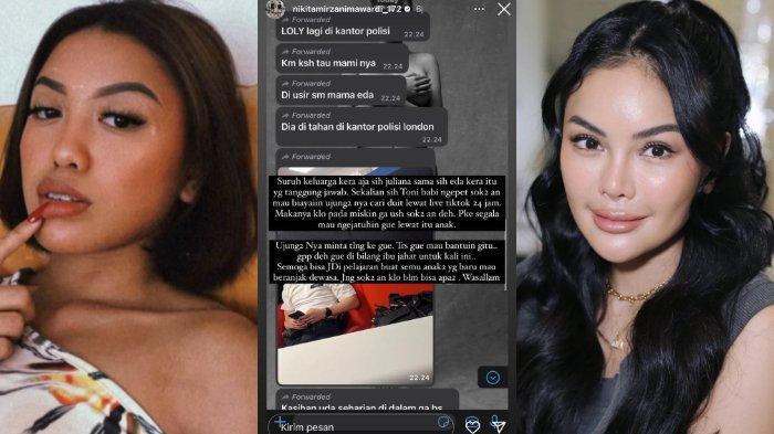 Kamu kasih tahu maminya, diusir sama Mama Eda. Dia ditahan di kantor polisi London, " lanjut pesan tersebut. Menanggapi pesan tersebut, Nikita Mirzani justru meradang. Wanita yang akrab disapa Nyai ini meminta keluarga Mami Eda lah yang bertanggung jawab atas apa yang dialami Lolly.